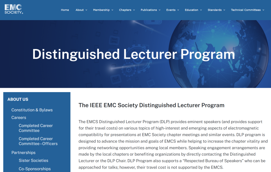 杰出讲师项目是IEEE EMC学会设立的最高学术演讲荣誉之一,旨在遴选在电磁兼容领域具有重要影响力、学术贡献突出并具有较好学术演讲能力的专家,为全球各地EMC分会提供高质量的专题学术报告,推动电磁兼容知识传播、技术交流与新研究方向的发展。杰出讲师由IEEE EMC学会理事会投票选定。入选者在两年任期内将接受全球各地EMC分会及相关组织的邀请,围绕热点与新兴主题进行特邀学术报告,并可主动与分会联系与对接,以支持IEEE EMC学会的使命实施、提升分会活动参与度及促进会员间的交流与合作。
