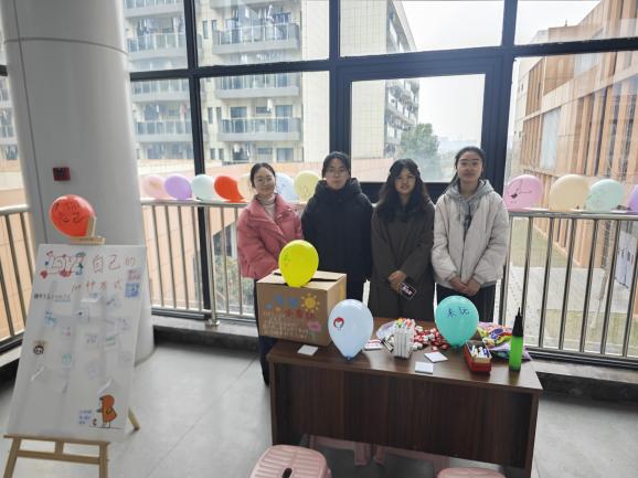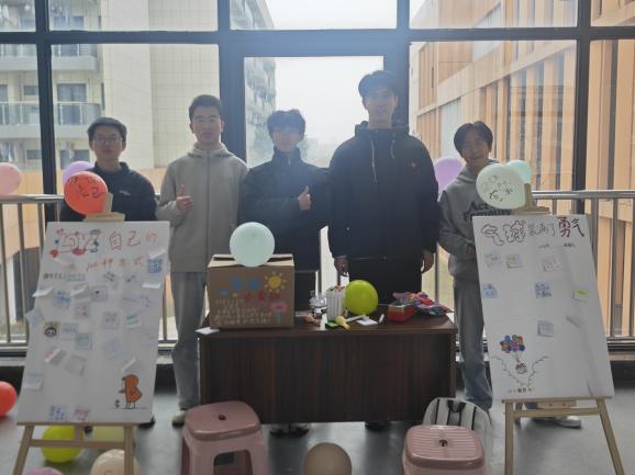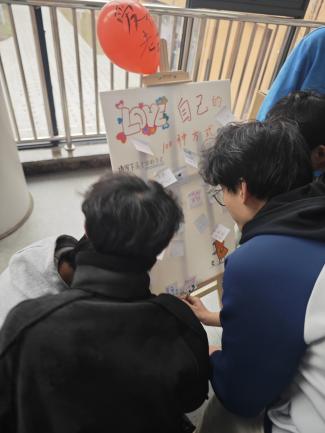 在天目湖校区东篱苑二楼餐厅门口,活动同样精彩纷呈。在“爱自己的100种方式”kt板前,同学们通过书写、绘画或粘贴便利贴,分享了诸多实用而温暖的自我关怀心得;在“勇气大爆发”区域,同学们写下真诚鼓励与内心期盼,一字一句传递着直面挑战的勇气;“情绪小卖部”区域,同学们将烦恼投入“情绪收纳箱”,并通过兑换糖果与气球的仪式感,完成了一次情绪的释放与转换,收获一份轻松甜蜜的心情。