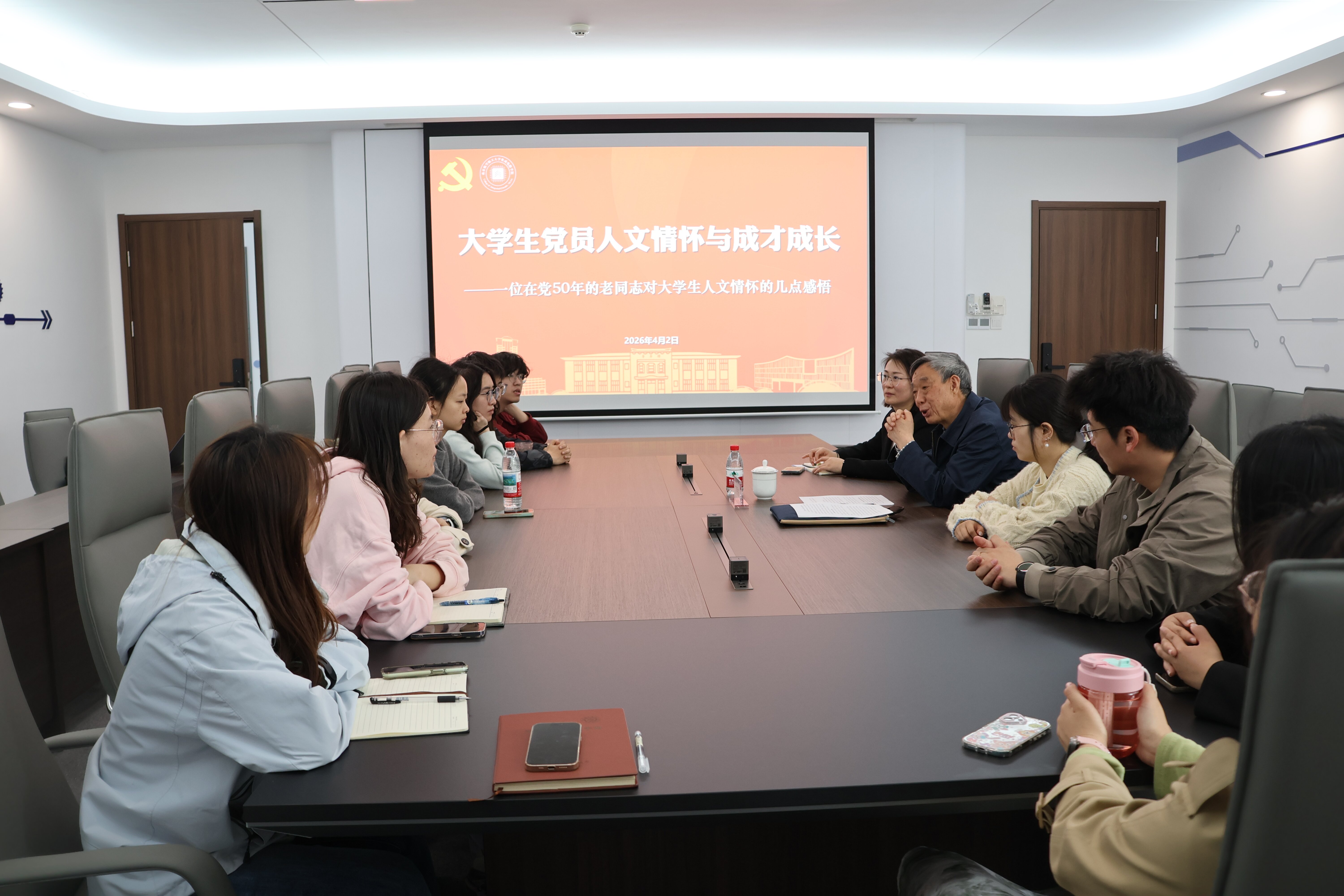 4月3日,十三水App 邀请校关工委常务副秘书长丁秀东为2026届研究生党员讲授“大学生(党员)人文情怀与成才成长”专题党课,以思想引领为毕业生的研途收官,为奔赴人生新征程注入精神力量。十三水App 党委副书记周聚主持活动,研究生辅导员李姝萱及2026届毕业生党员参与活动。